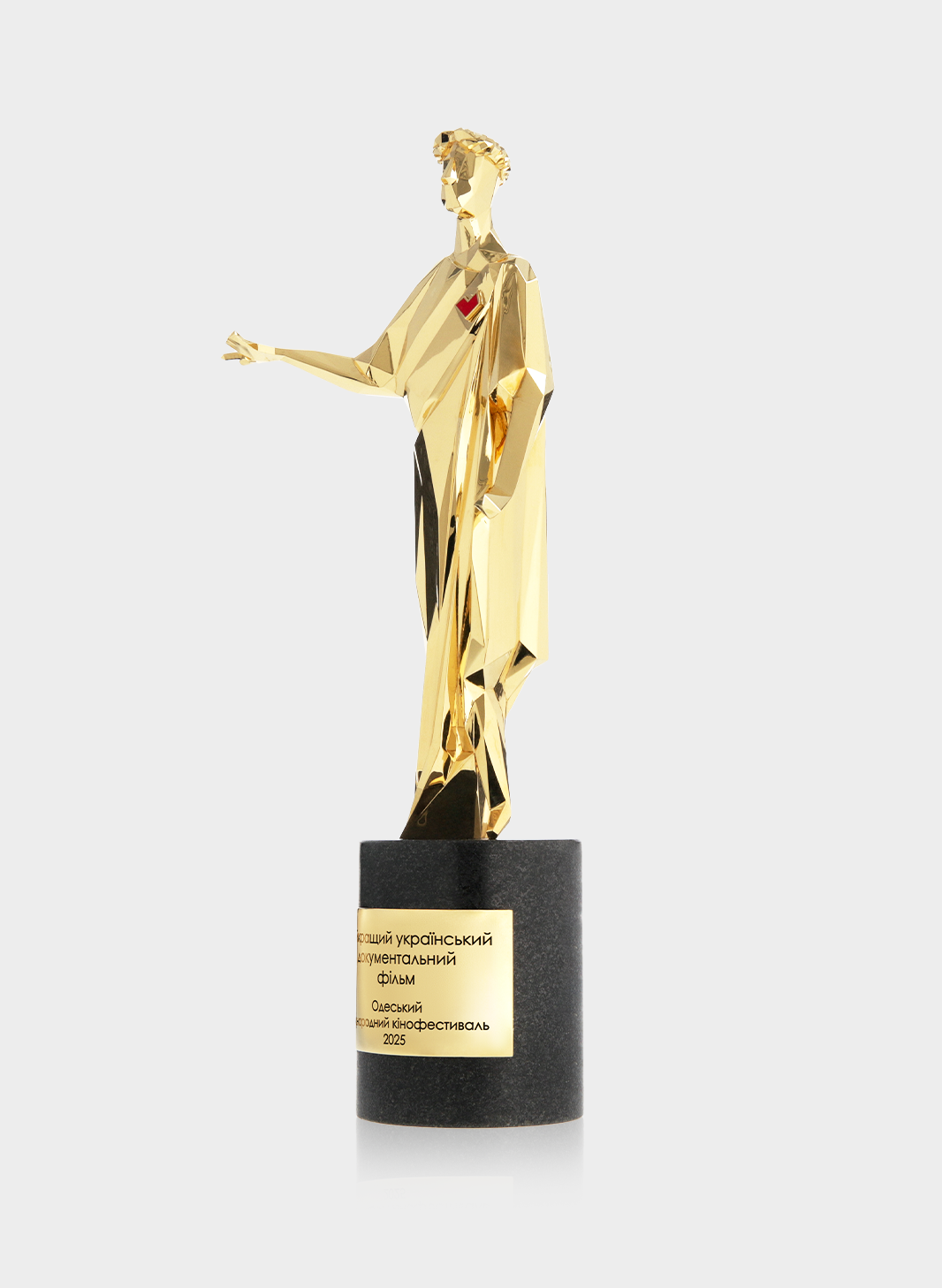Символ визнання та тріумфу на Одеському міжнародному кінофестивалі 2025. Виконана у сучасній геометричній стилістиці, статуетка постає в образі герцога де Рішельє — легендарного засновника міста й уособлення величі Одеси.